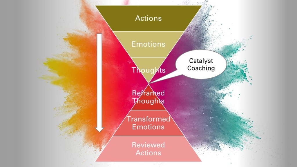 All the three elements of T.E.A. (Thoughts, Emotions and Actions) influences one another in many different ways, and outcomes. Often, what we thought a person might do (action), feel (emotions) and think (thoughts) are different than what it actually is. Through coaching, use of powerful questions, we can move the barometer towards reframed thoughts, transformed emotions and reviewed actions, a more constructive, optimistic way moving forward.
